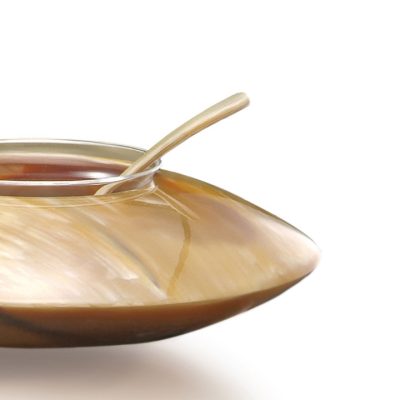 Bowl in horn and Venetian glass, spoon in horn
