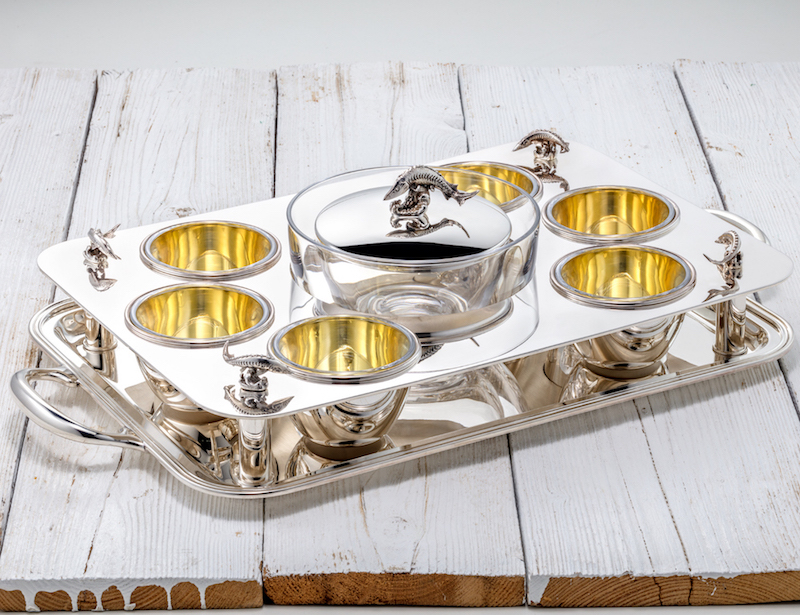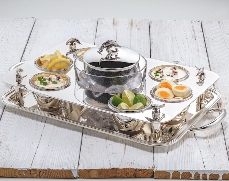 Centre crystal bowl for ice Ø 17 cm, inner bowl with silver-plated lid "Sturgeon" Ø 13 cm