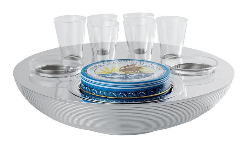 2 person caviar-vodka set, 2 vodka glasses and 5 small bowls