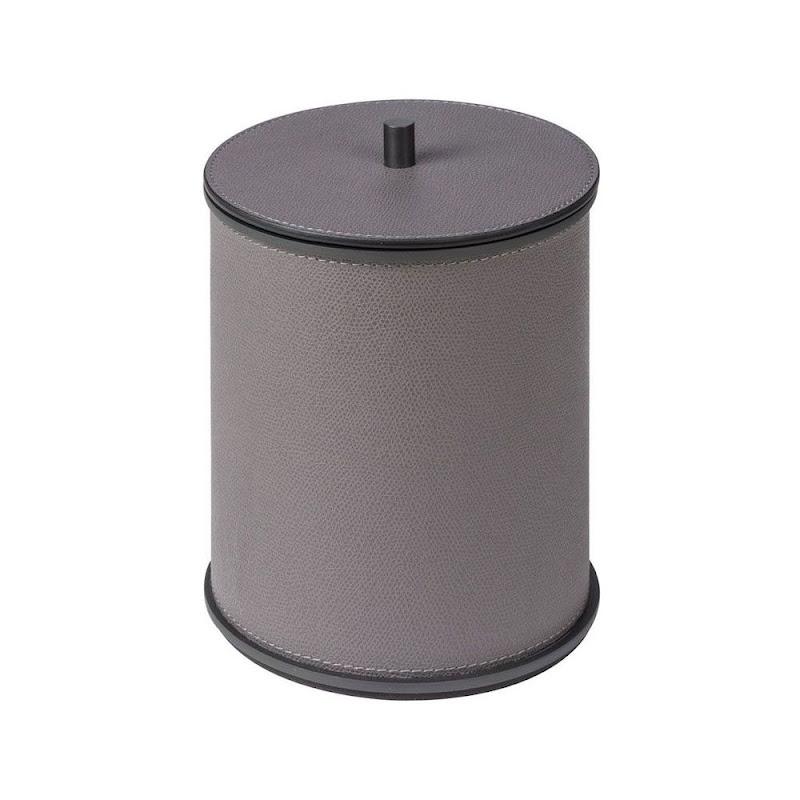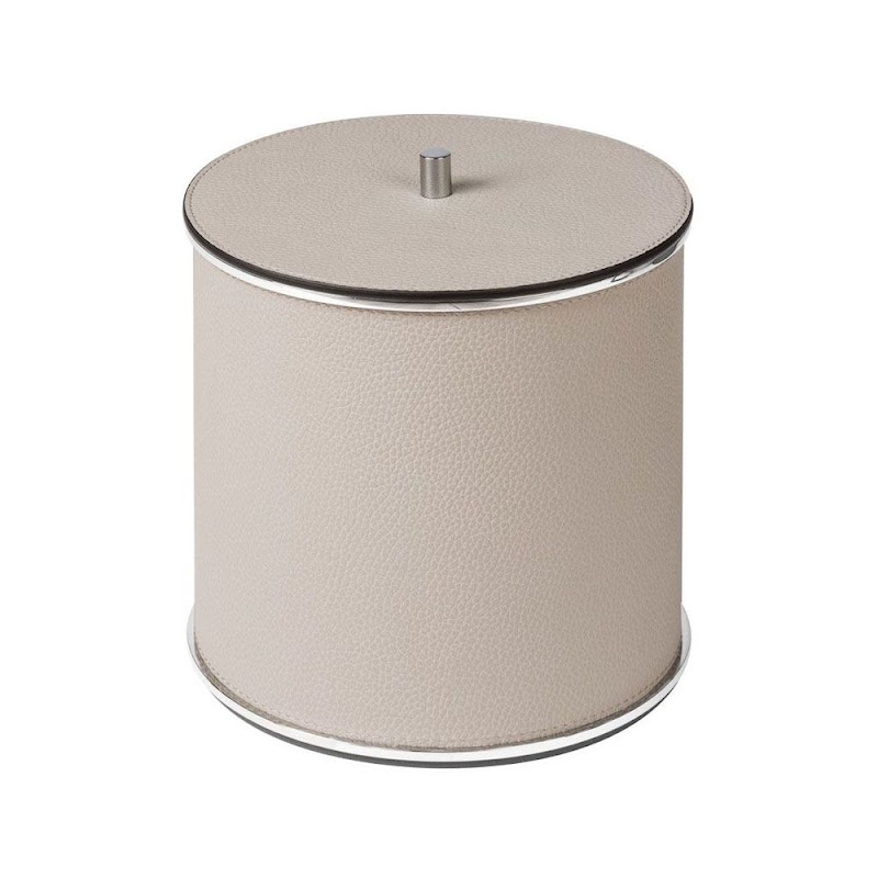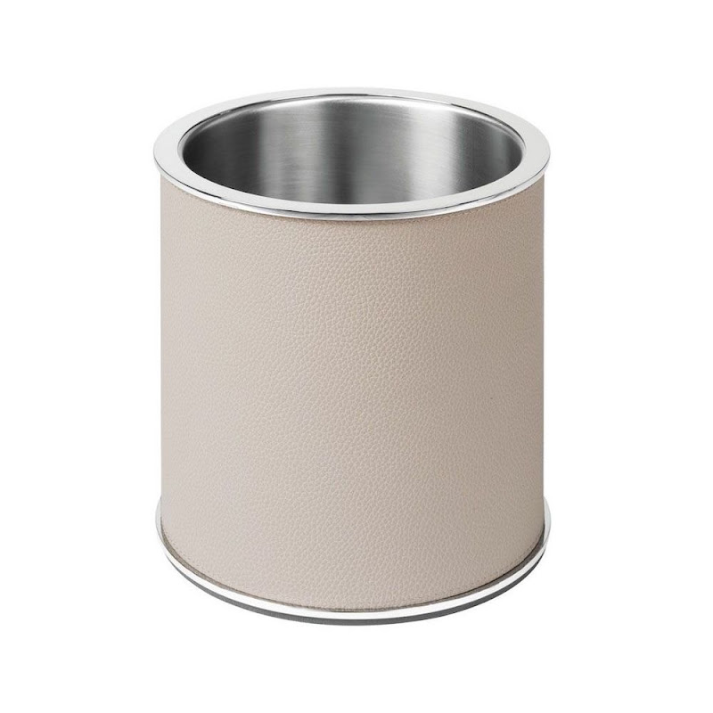 Partially leather-covered insulated double-chamber brass and stainless steel structure.