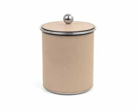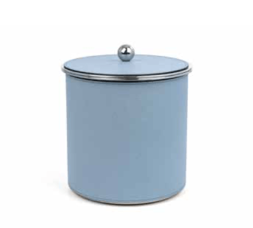 Insulated ice bucket with lid in chrome-plated steel and leather