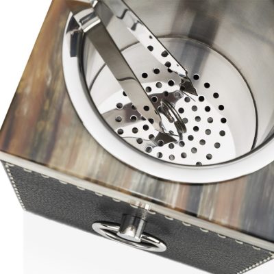The removable bucket liner, ice tongs and handles are in stainless steel.