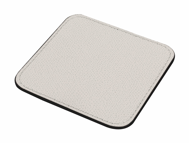 | Coaster holder with 6 coasters, square “David”. Leather covered wood structure able to host 6 “Tao” coasters. Coasters made entirely of leather, semi-flexible and waterproof.