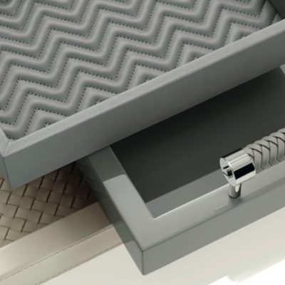 The leather and the lacquered wood are available in various colours