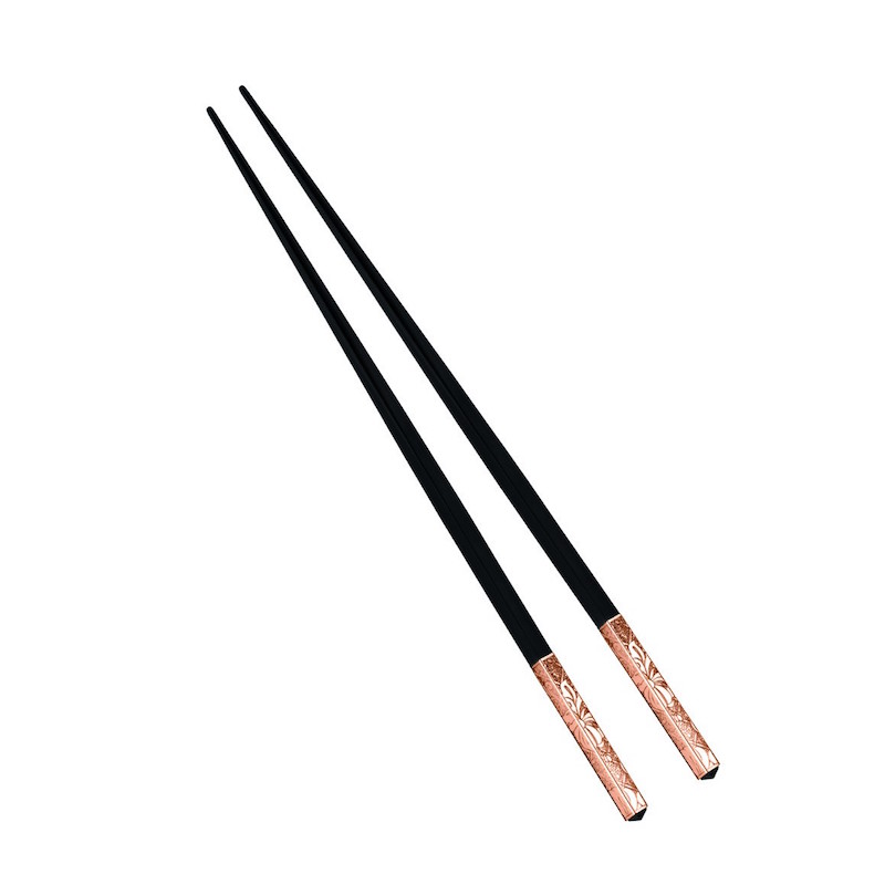 Pair of Chinese chopsticks, ebony/pink gold finish