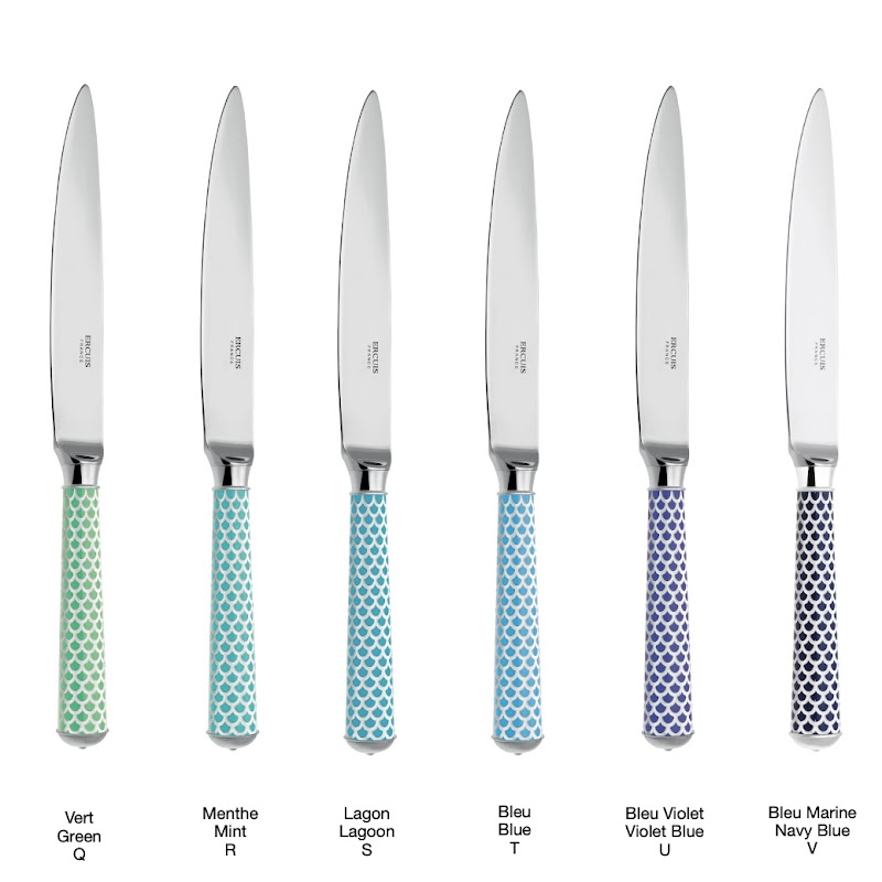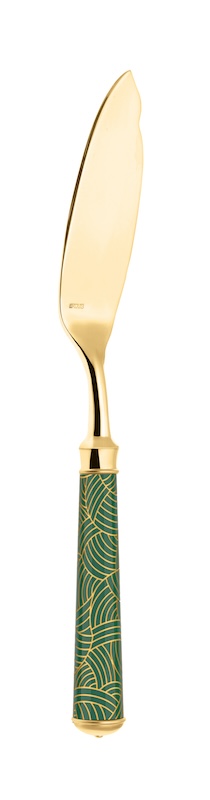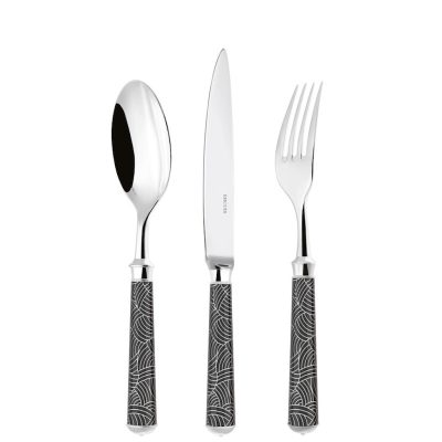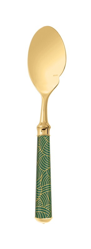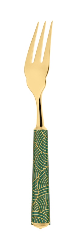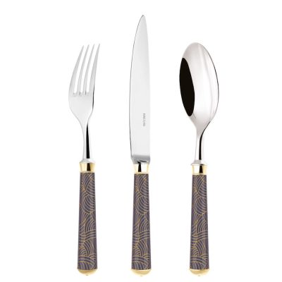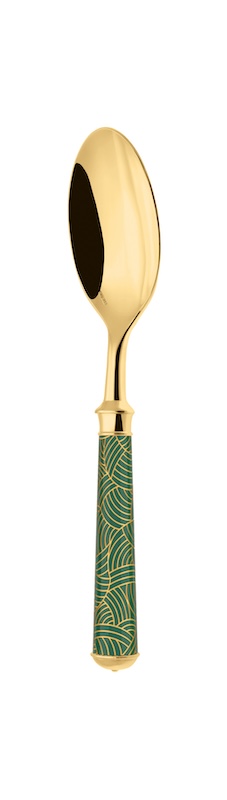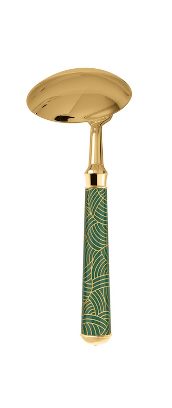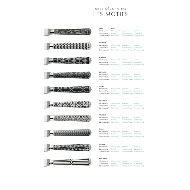 With it’s coloured patterns evoking the key trends of French Decorative Arts.The flatware is lacquered before being engraved with one of the 10 guilloché patterns. It is then silver or gold plated