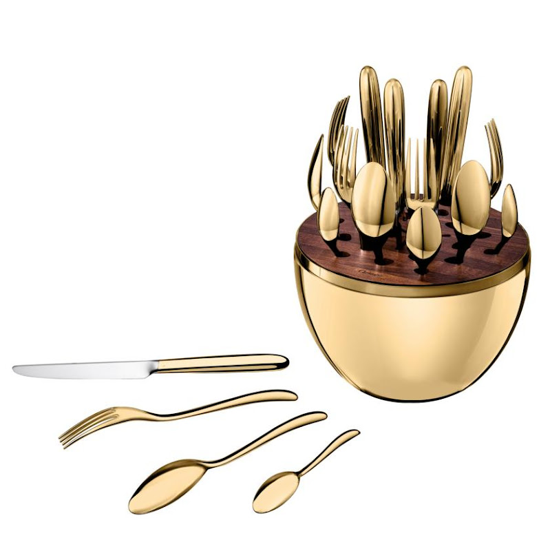 Gilded 24-piece cutlery set in gilded stainless steel 'egg' case