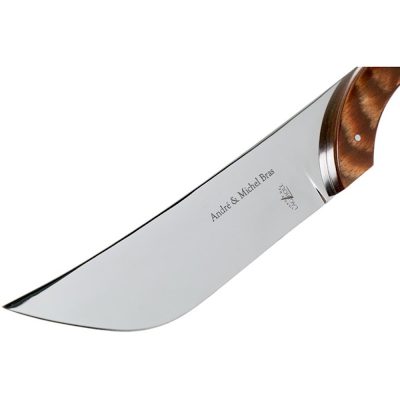 Its tapered and beveled cutting edge results in a high precision cut. The shape of the handle ensures that the knife is perfectly balanced when posed on the table without the blade touching the surface.