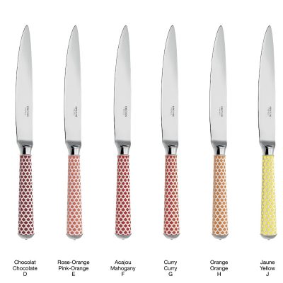 With it’s coloured patterns evoking the key trends of French Decorative Arts.The flatware is lacquered before being engraved with one of the 10 guilloché patterns. It is then silver or gold plated