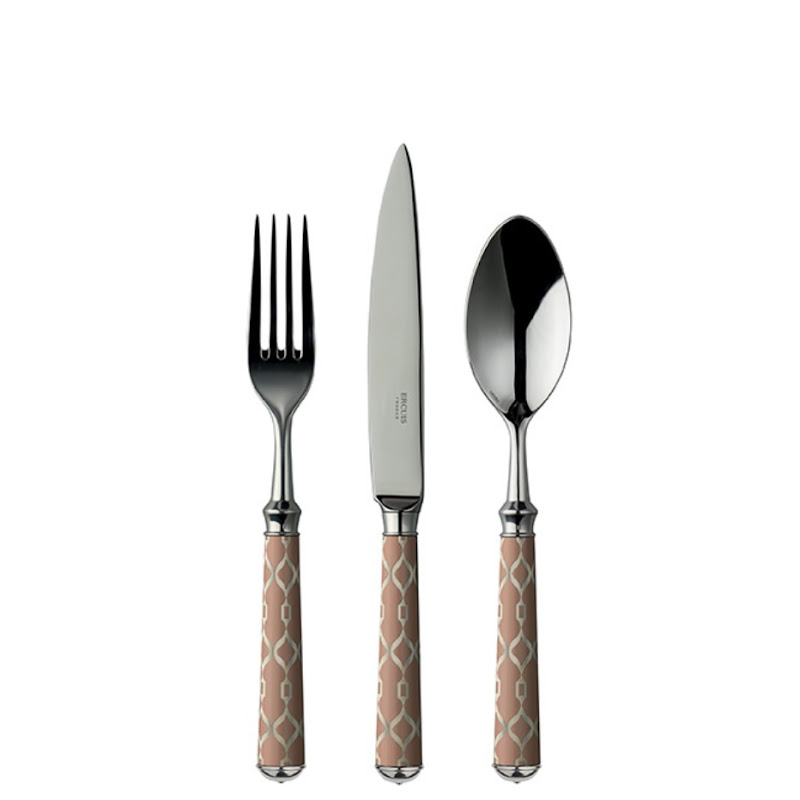 With it’s coloured patterns evoking the key trends of French Decorative Arts.The flatware is lacquered before being engraved with one of the 10 guilloché patterns. It is then silver or gold plated