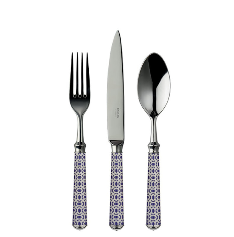 With it’s coloured patterns evoking the key trends of French Decorative Arts.The flatware is lacquered before being engraved with one of the 10 guilloché patterns. It is then silver or gold plated