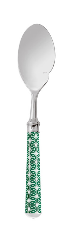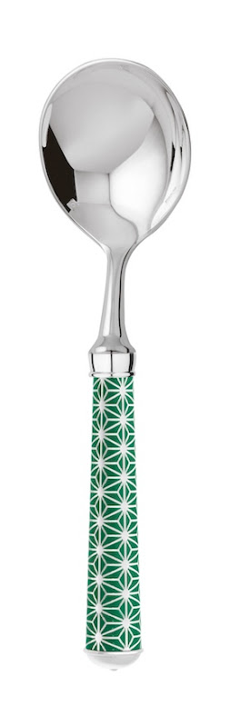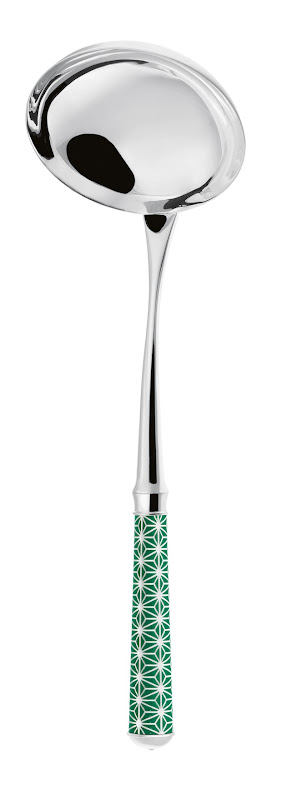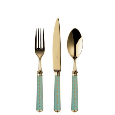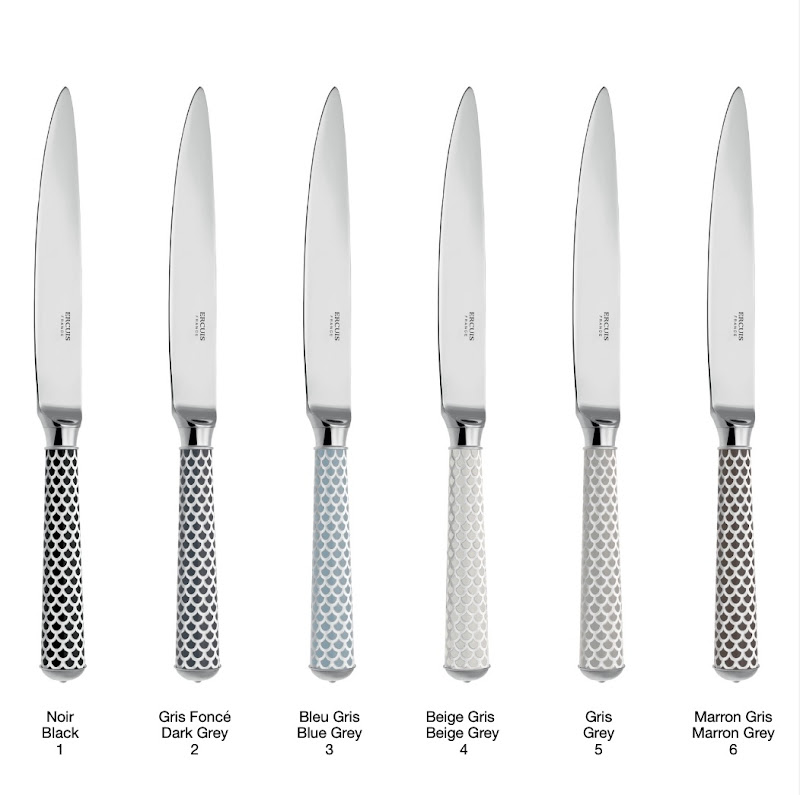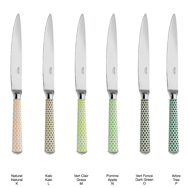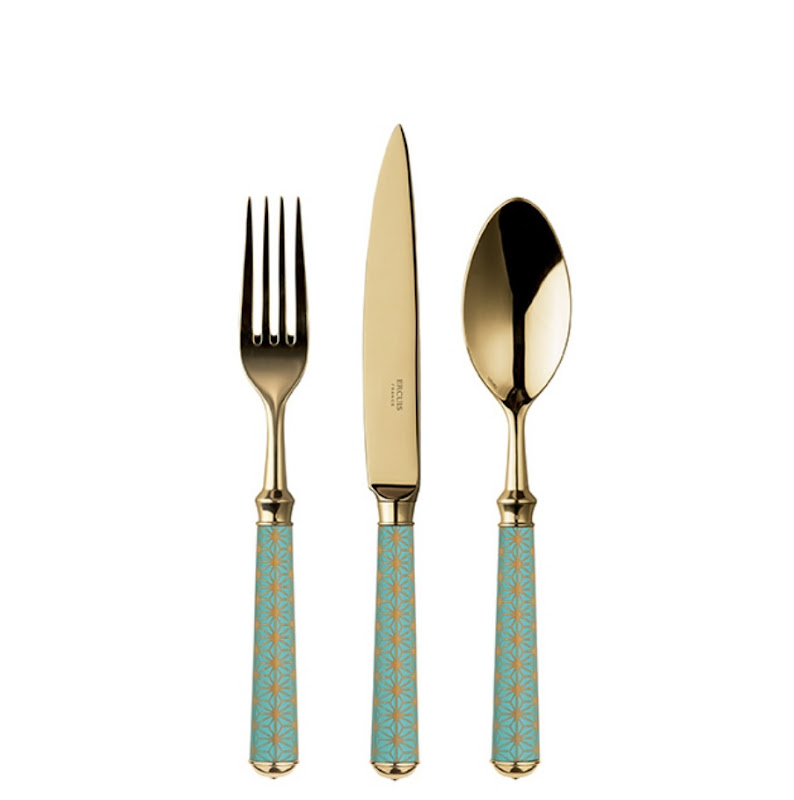 With it’s coloured patterns evoking the key trends of French Decorative Arts.The flatware is lacquered before being engraved with one of the 10 guilloché patterns. It is then silver or gold plated