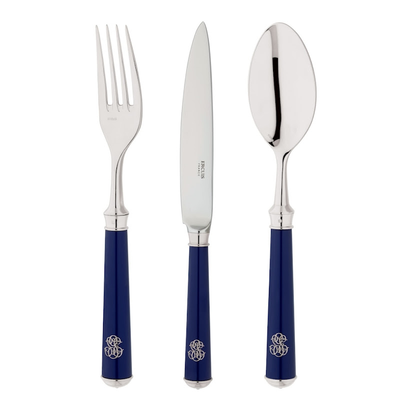 The flatware is lacquered before being engraved if desired, with either monogram, crest or bespoke. It is then silver or gold plated