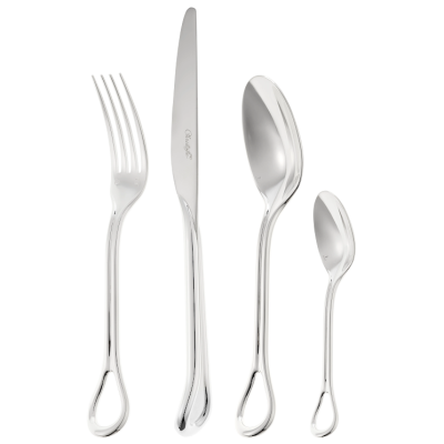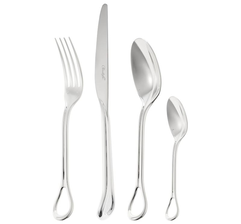 Beyond its artistic strength and technical prowess, the drop – the openwork part – of the cutlery becomes functional, allowing it to find its place within the case like a piece of kinetic sculpture.