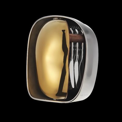The collection is the perfect alignment of two identities in metalsmithing: jewelry and tableware.