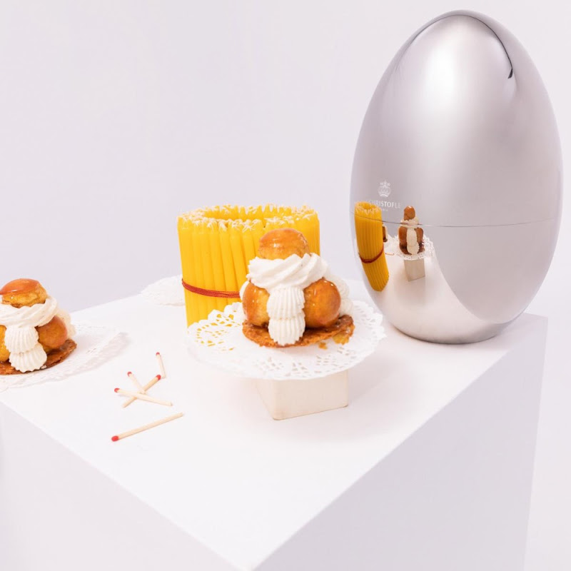 Silverplated 24-piece dessert/starter cutlery set in stainless steel 'egg' case