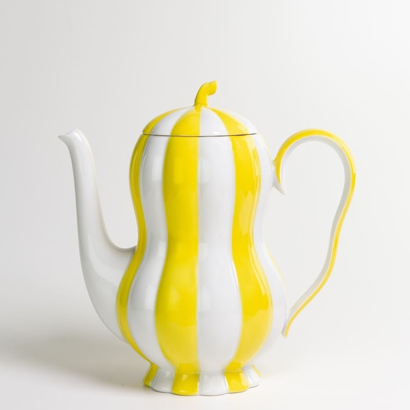 The exoticism of the fruit shapes with the perky handle knob as well as the pleasantly grippy handles, whose softly undulating shape elegantly reflects the softly ribbed walls of the vessels, characterise the charisma of this service.