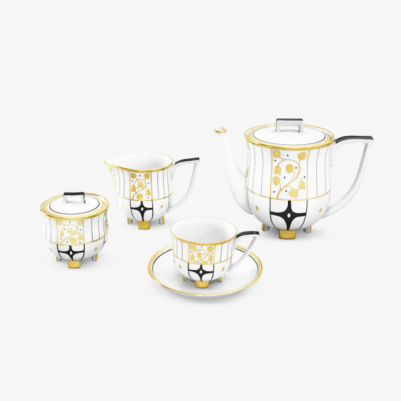 Inspired by a design by architect Josef Hoffmann for a silk fabric from around 1910, Deco Vienne conveys the creative flair of the Wiener Werkstätte. Decorative elements that Josef Hoffmann valued for his Gesamtkunstwerk, such as the climbing bellflowers surrounded by abstract graphic structures, characterise the design of Viennese modernism. The famous "Form 19" is an original design by Hoffmann and is characterised by its unusual shape.
