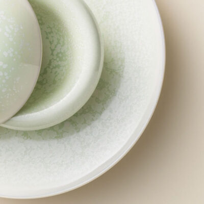 Jaune de Chrome is known world-wide for their exclusive glaze craftsmanship: Metallic components blended with glaze are meticulously applied on porcelain, after which the magic of the firing process transfoms the raw materials. Each piece is unique, neither exactly the same, nor really different.