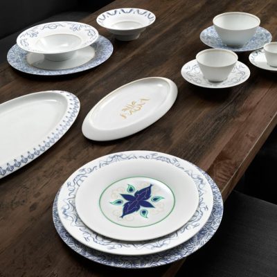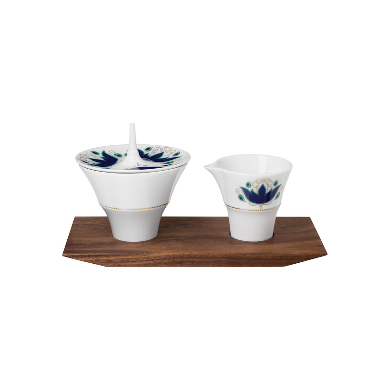 Bisque porcelain, finely polished, with different cobalt and gold ornaments