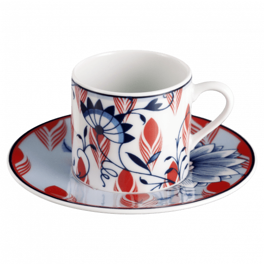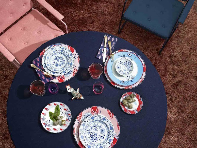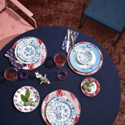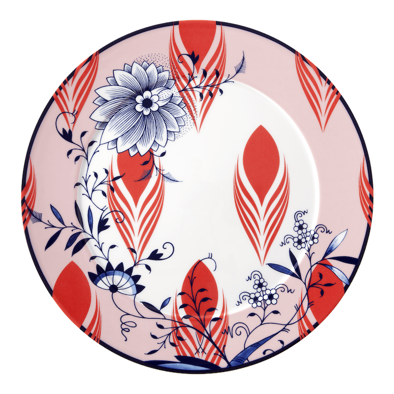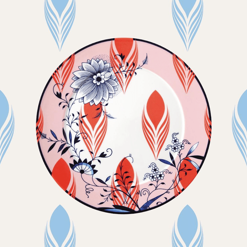 Collage Bloomy Feathers is a set of Porcelain where you will find old motifs from the Meissen archives complemented by grafic elements