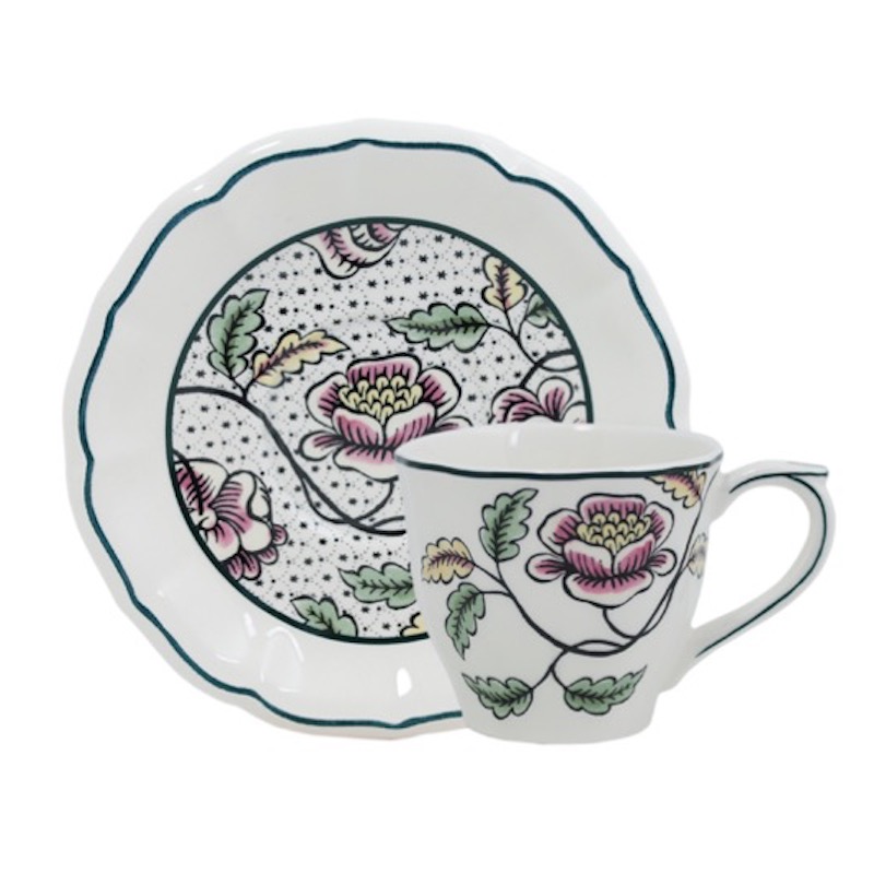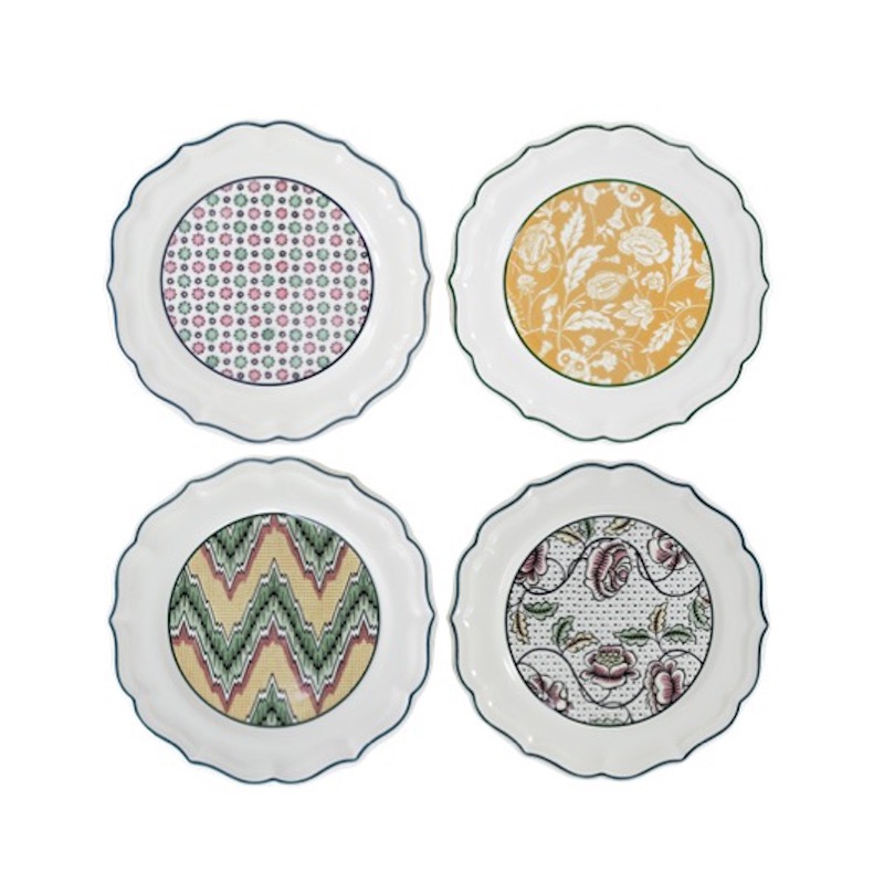 This collection is the result of a joint effort with a young team of 'dominoté' wallpaper desigers. Floral and geometric motifs adorn the beautiful scallop of this set