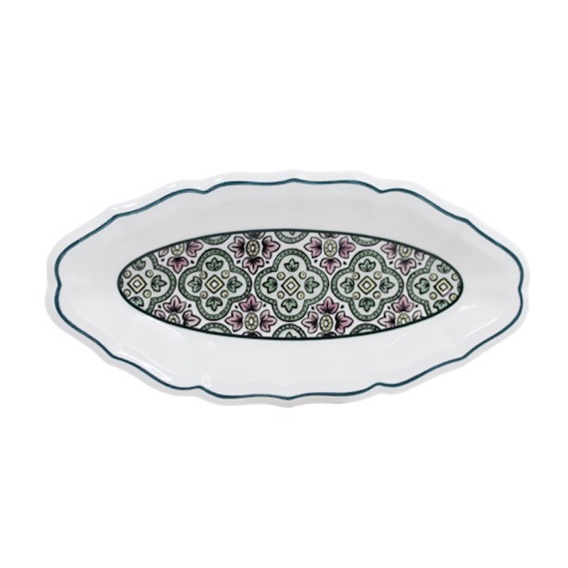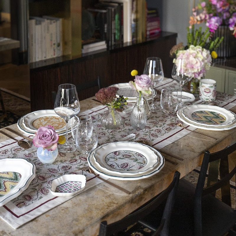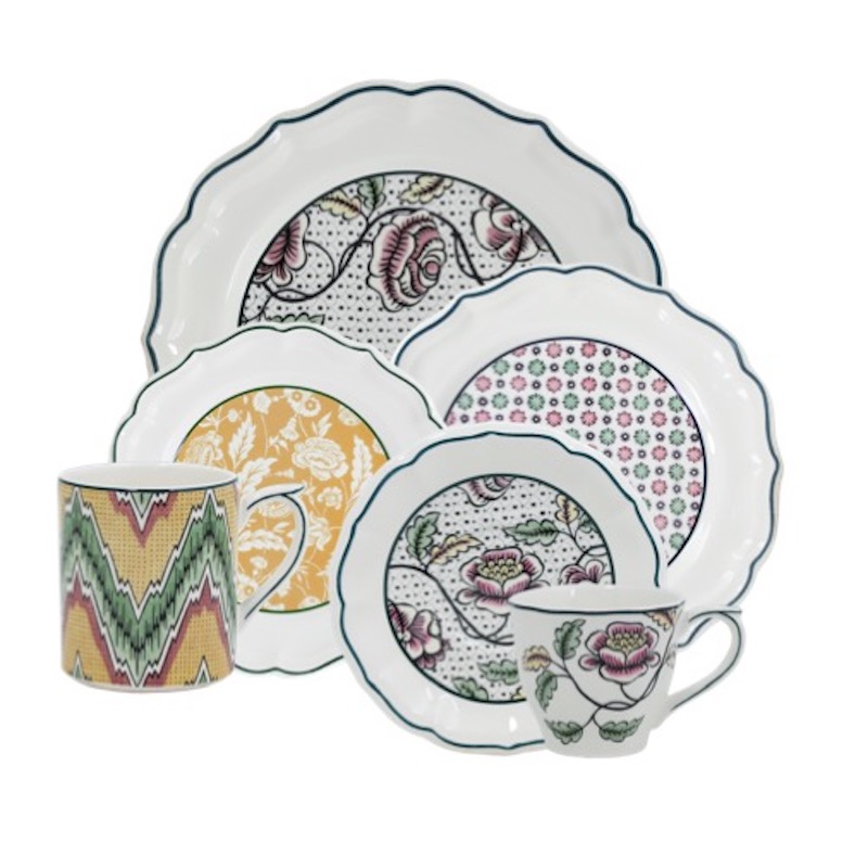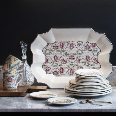 This collection is the result of a joint effort with a young team of 'dominoté' wallpaper desigers. Floral and geometric motifs adorn the beautiful scallop of this set