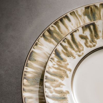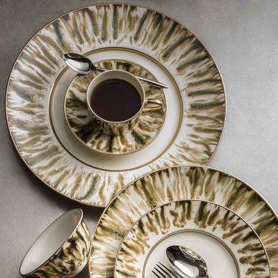 Jaune de Chrome is known world-wide for their exclusive glaze craftsmanship: Metallic components blended with glaze are meticulously applied on porcelain, after which the magic of the firing process transfoms the raw materials. Each piece is unique, neither exactly the same, nor really different.