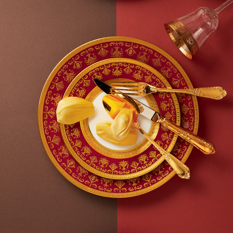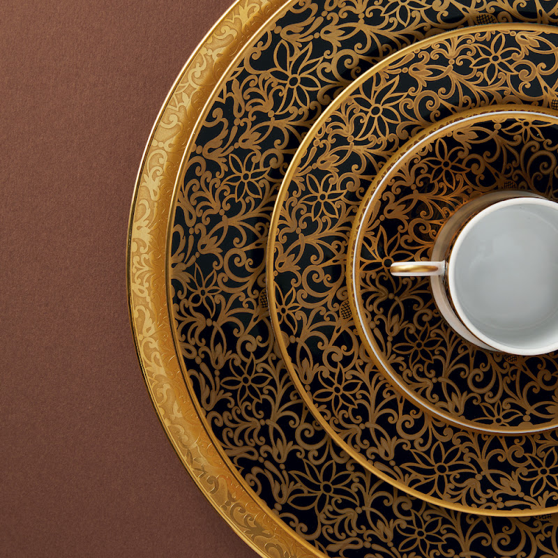 A collection of exclusive dinner sets made of Limoges porcelain with rich patterns and refined with gold or platinum