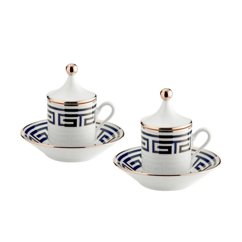 Set of 2 espresso cup & saucer with lid