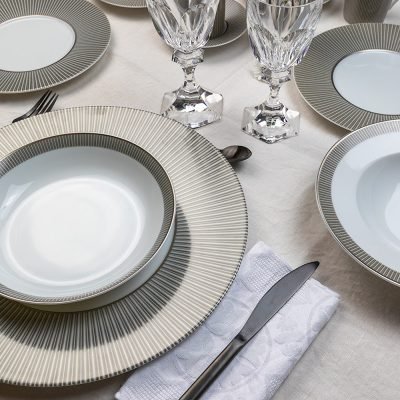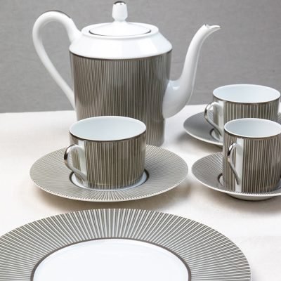 A contemporary design with refined lines in shades of browm and a platinum finish. This set is not suitable for the dishwasher nor for the microwave