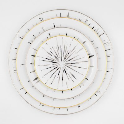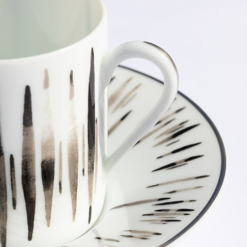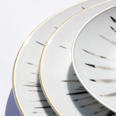 A geometrical pattern available with a gold or platinum finish. This set is not suitable for the dishwasher nor for the microwave