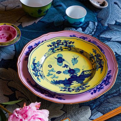 A tribute to porcelain craftsmanship, Ginori 1735's Oriente Italiano collection harmoniously blends tradition with innovation, showcasing Italian creativity, color, and artistry.