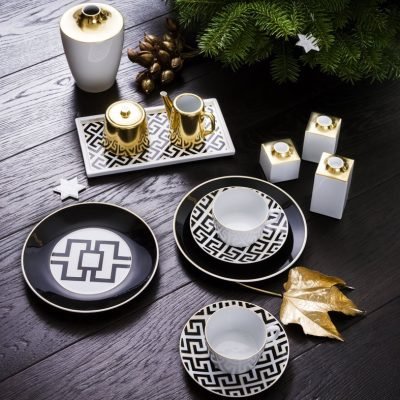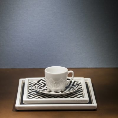 The mosaique floor of the Meissen Albrechts Castle has been the inspiration of the geomatric pattern of the dinnerware