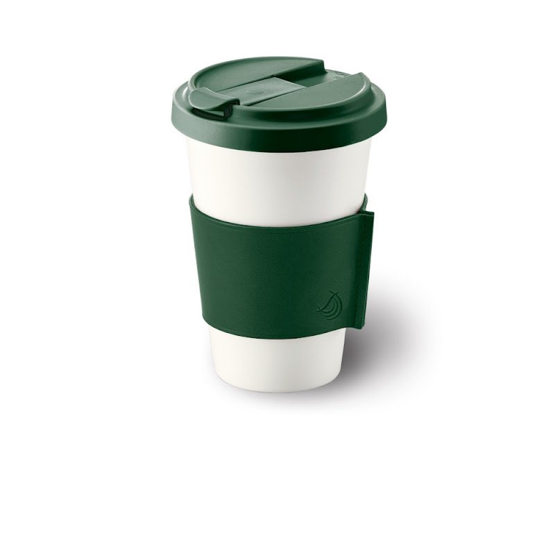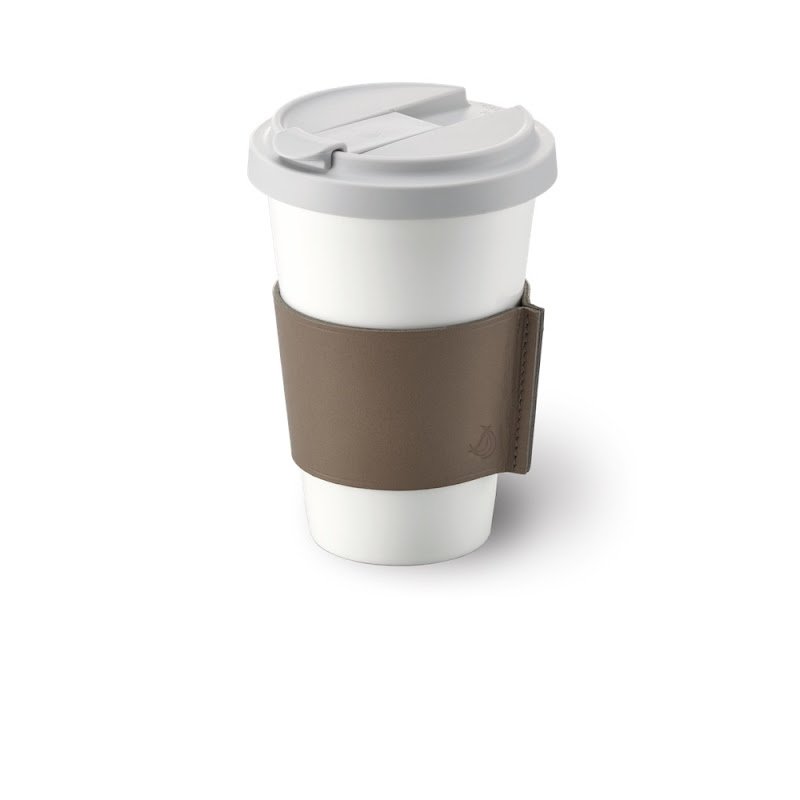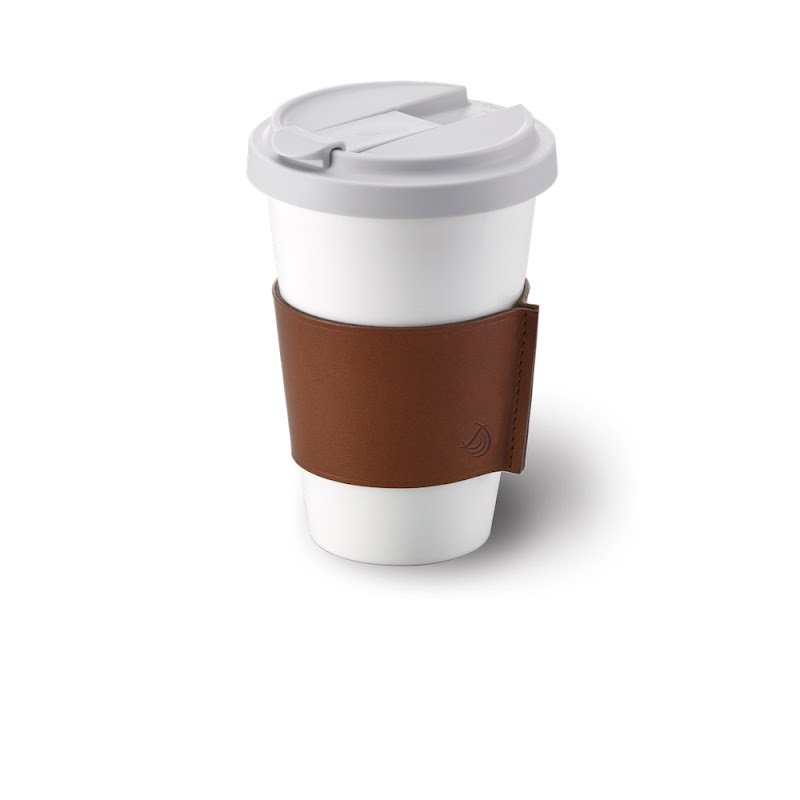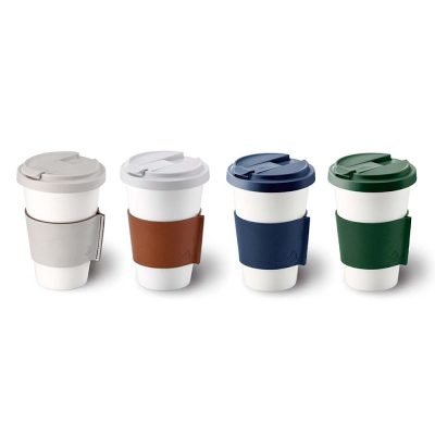Coffee To-Go mug with leather sleeve in Navy Blue
