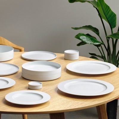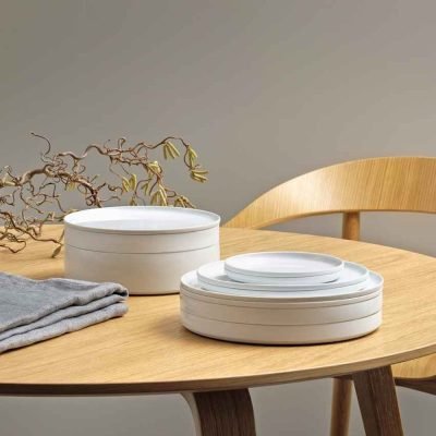 DATUM is modular tableware that combines clear design with exceptional functionality and contemporary flexibility. The plates, cups, mugs and bowls are dimensionally linked, creating interchangeable and stackable tableware.