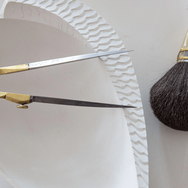 Similar to glazed porcelain Bisque is greatly condensed in two firings at high temperature, then polished to get it's velvety structure