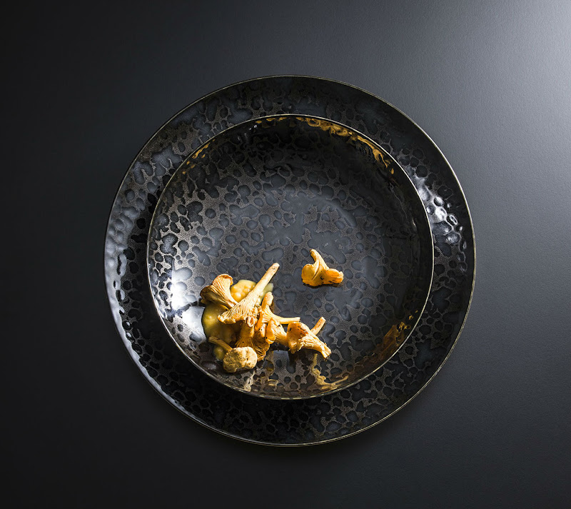 Jaune de Chrome is known world-wide for their exclusive glaze craftsmanship: Metallic components blended with glaze are meticulously applied on porcelain, after which the magic of the firing process transfoms the raw materials. Each piece is unique, neither exactly the same, nor really different.