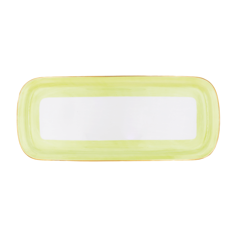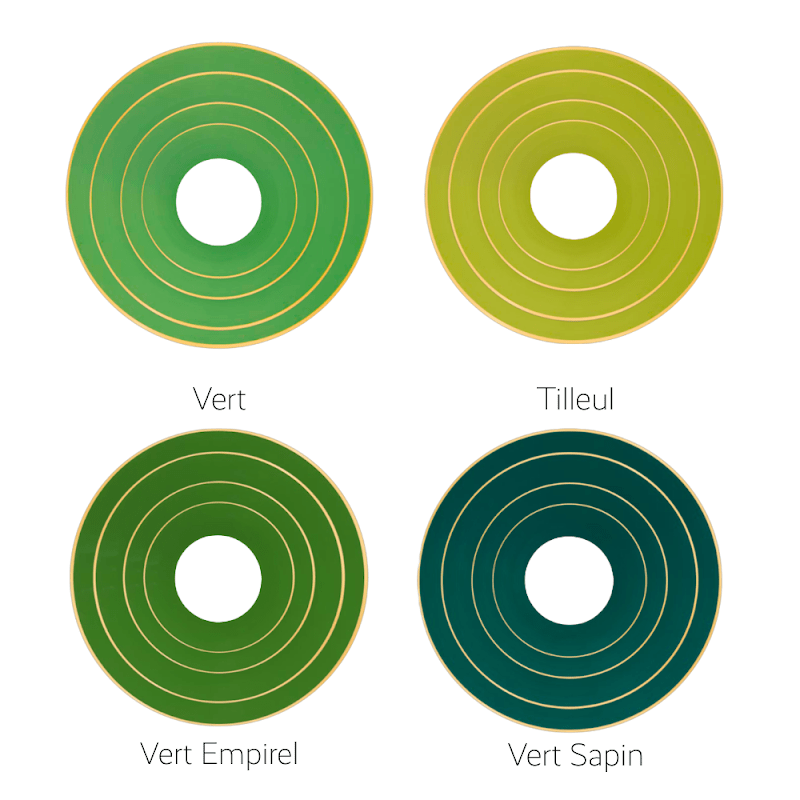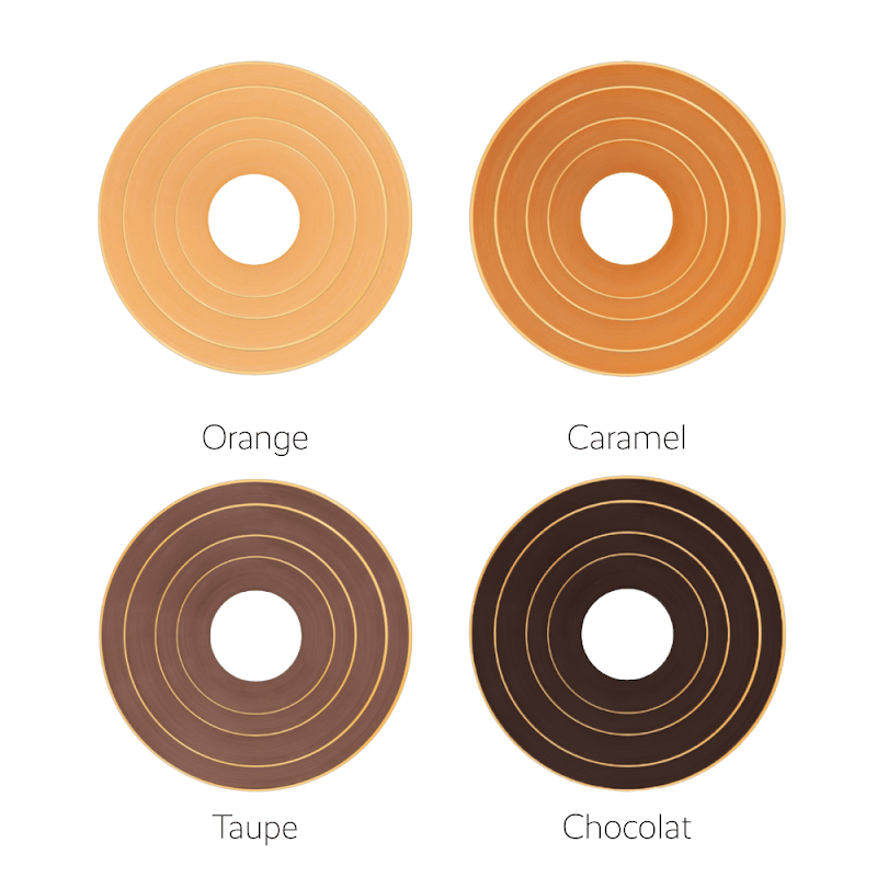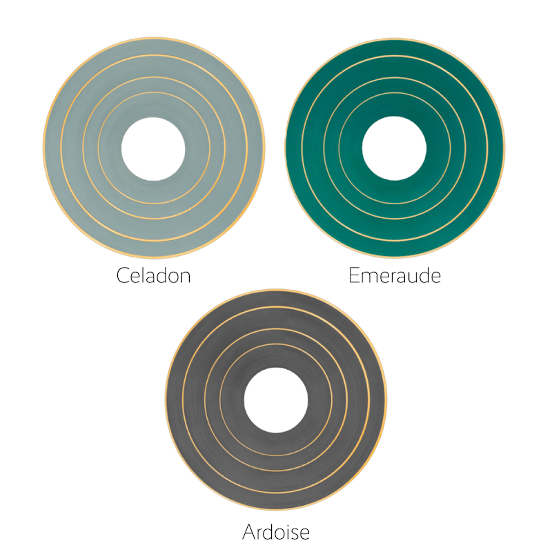 A multi colored design, hand-painted and accented with a matte gold or platinum fillet.