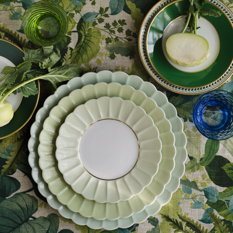 Today fashion designer Giambattista Valli tells a story of artisanal pride and creative passion in soft greens.