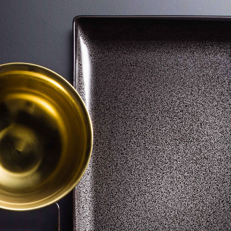 Jaune de Chrome is known world-wide for their exclusive glaze craftsmanship: Metallic components blended with glaze are meticulously applied on porcelain, after which the magic of the firing process transfoms the raw materials. Each piece is unique, neither exactly the same, nor really different.