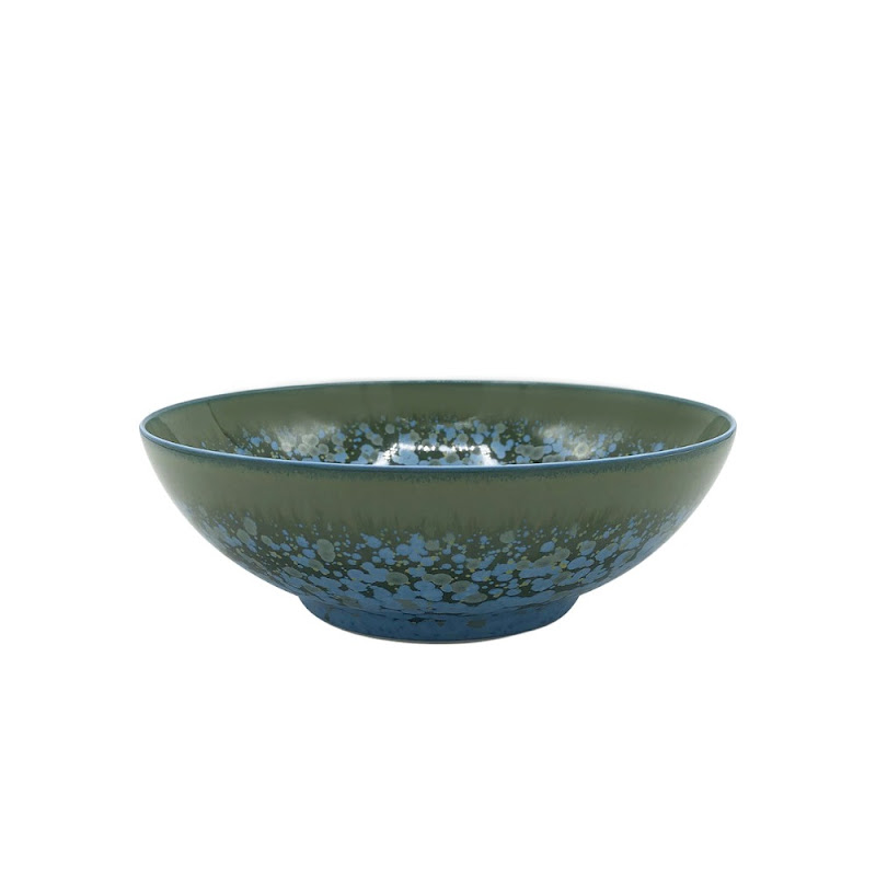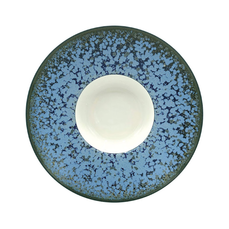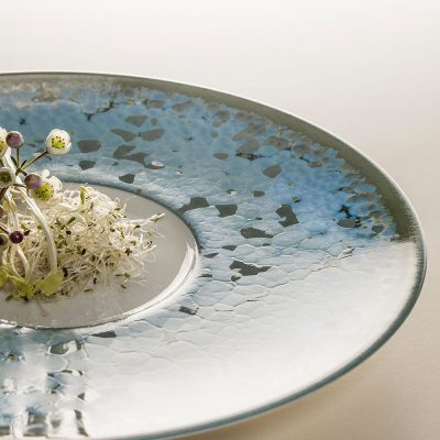 Jaune de Chrome is known world-wide for their exclusive glaze craftsmanship: Metallic components blended with glaze are meticulously applied on porcelain, after which the magic of the firing process transfoms the raw materials. Each piece is unique, neither exactly the same, nor really different.