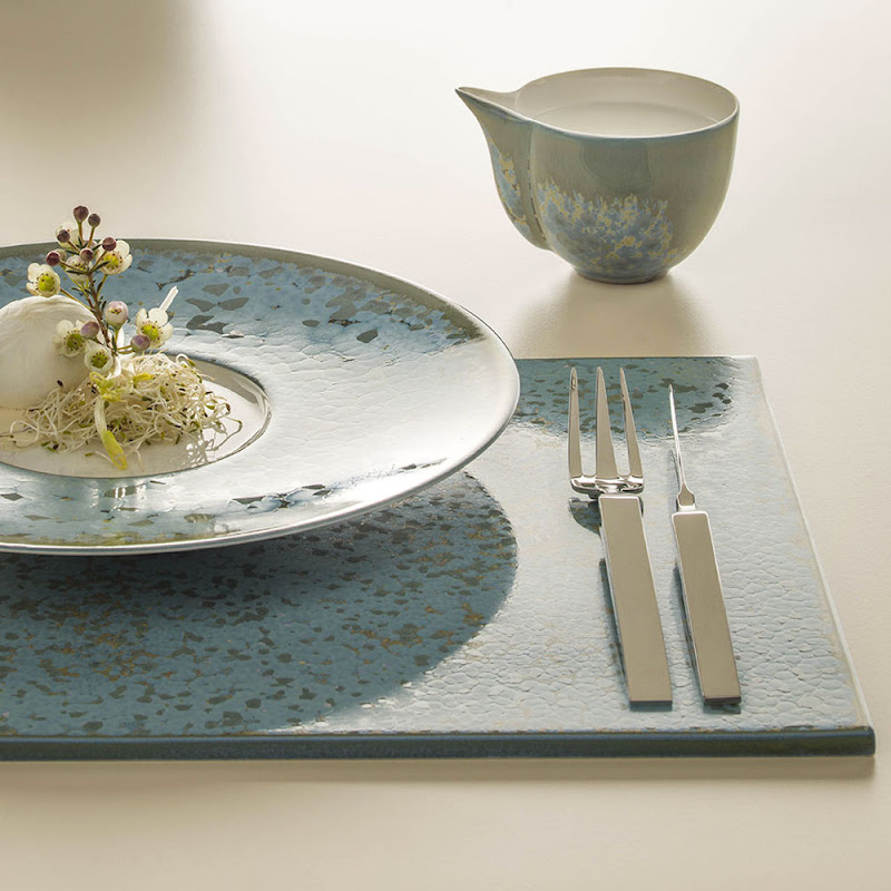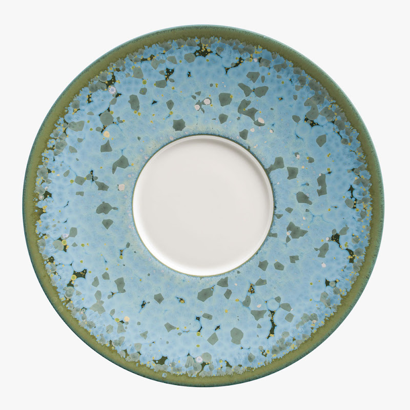 Jaune de Chrome is known world-wide for their exclusive glaze craftsmanship: Metallic components blended with glaze are meticulously applied on porcelain, after which the magic of the firing process transfoms the raw materials. Each piece is unique, neither exactly the same, nor really different.