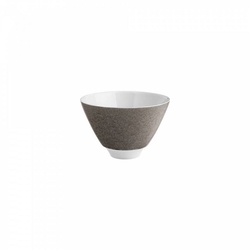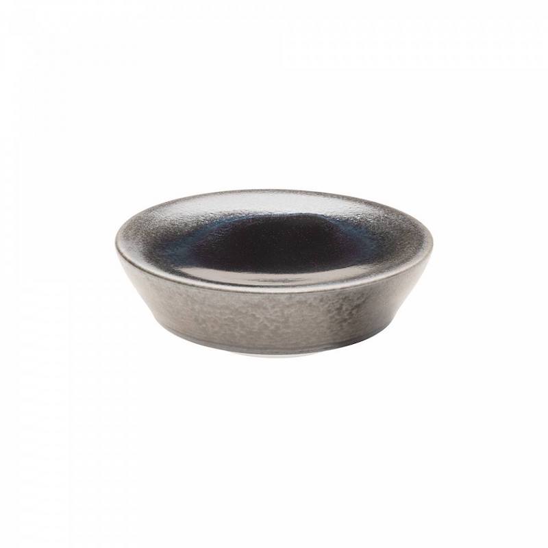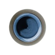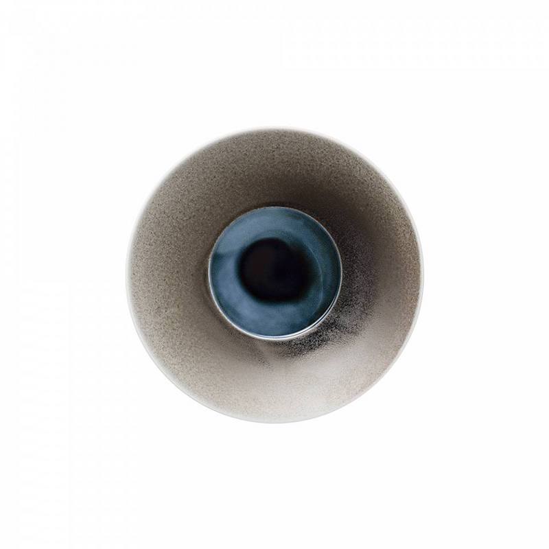 Porcelain, earth coloured matt glaze with cobalt blue glaze center