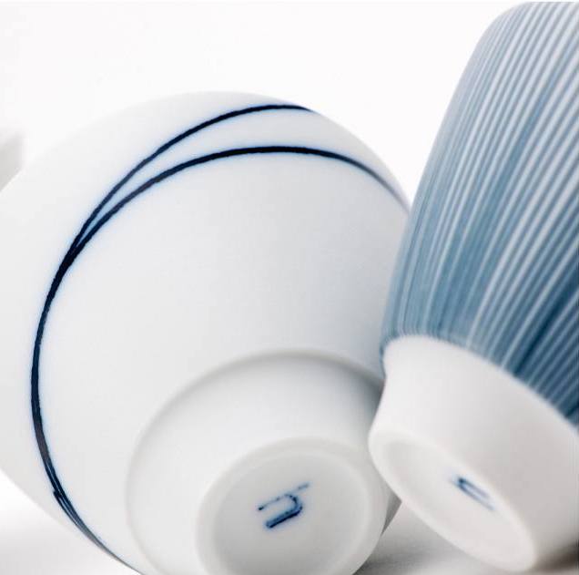 Bisque porcelain, finely polished and decorated with a fine cobalt line