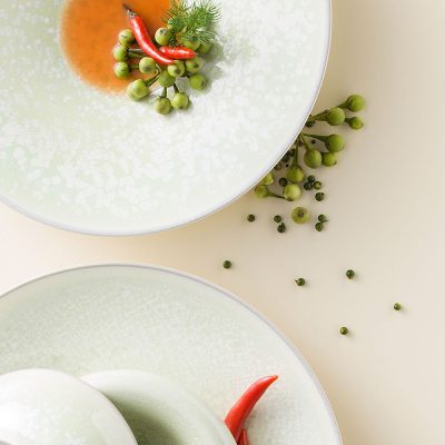Jaune de Chrome is known world-wide for their exclusive glaze craftsmanship: Metallic components blended with glaze are meticulously applied on porcelain, after which the magic of the firing process transfoms the raw materials. Each piece is unique, neither exactly the same, nor really different.
