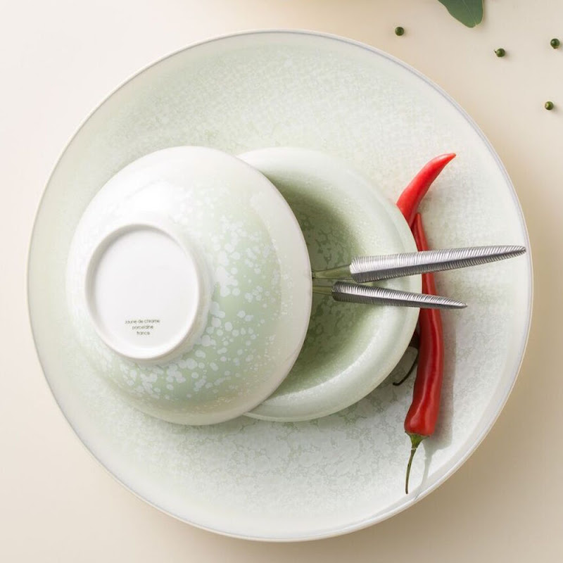 Jaune de Chrome is known world-wide for their exclusive glaze craftsmanship: Metallic components blended with glaze are meticulously applied on porcelain, after which the magic of the firing process transfoms the raw materials. Each piece is unique, neither exactly the same, nor really different.