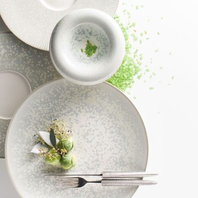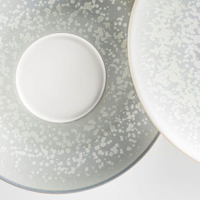 Jaune de Chrome is known world-wide for their exclusive glaze craftsmanship: Metallic components blended with glaze are meticulously applied on porcelain, after which the magic of the firing process transfoms the raw materials. Each piece is unique, neither exactly the same, nor really different.