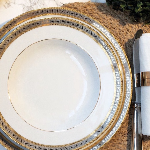 As a tribute to one of the most beautiful squares in Paris, Place Vendôme. Haviland designed a decor like a juwel in gold and platinum. A rich, though elegant and refined border surrounds the classical shapes of the Place Vendôme dinnerware