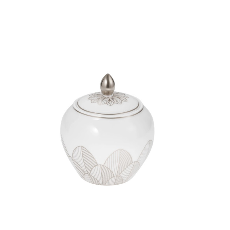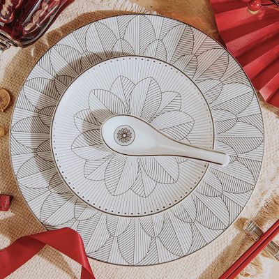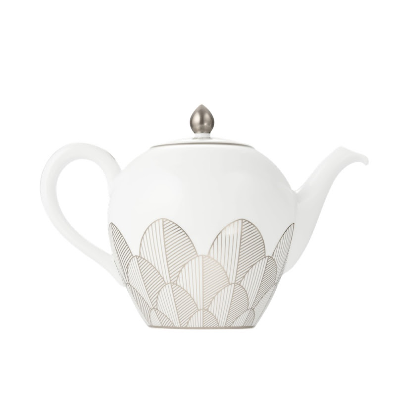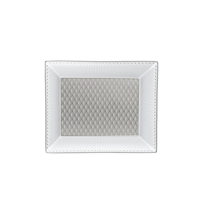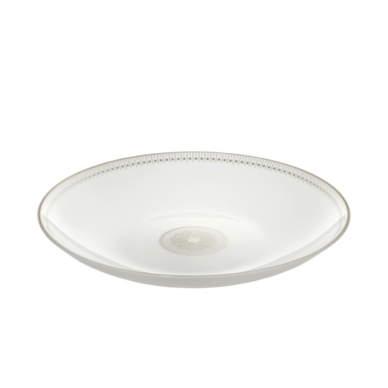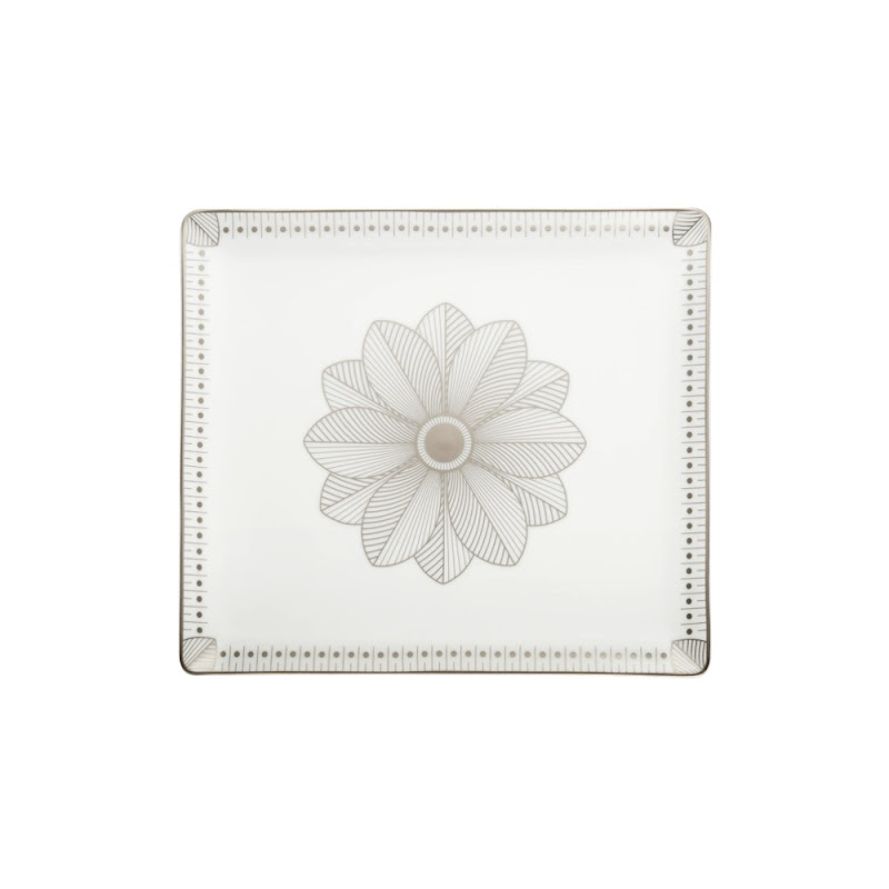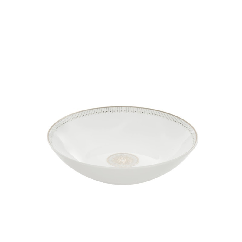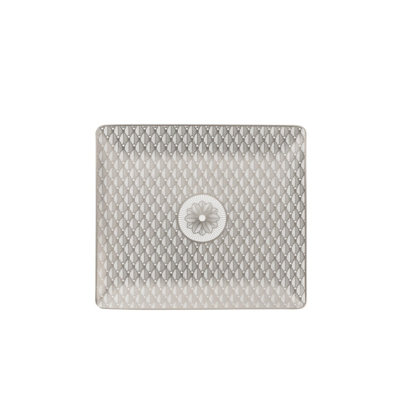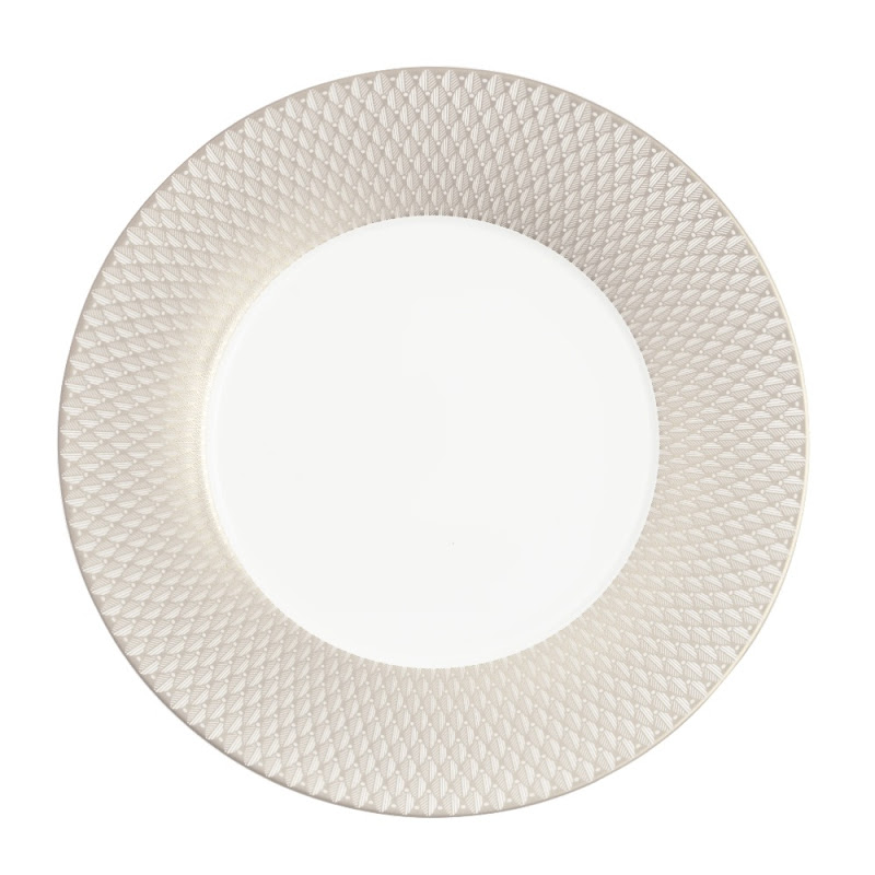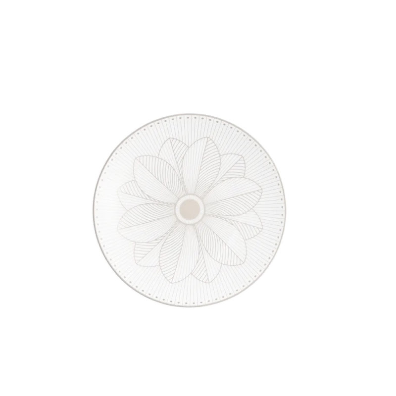 The pattern is inpired by the traditional Malmaison model, but has a modern, contemporary appearance. Each piece has its own decoration and thus allows you to vary your table according to the moments of tasting. Available in platinium and gold.